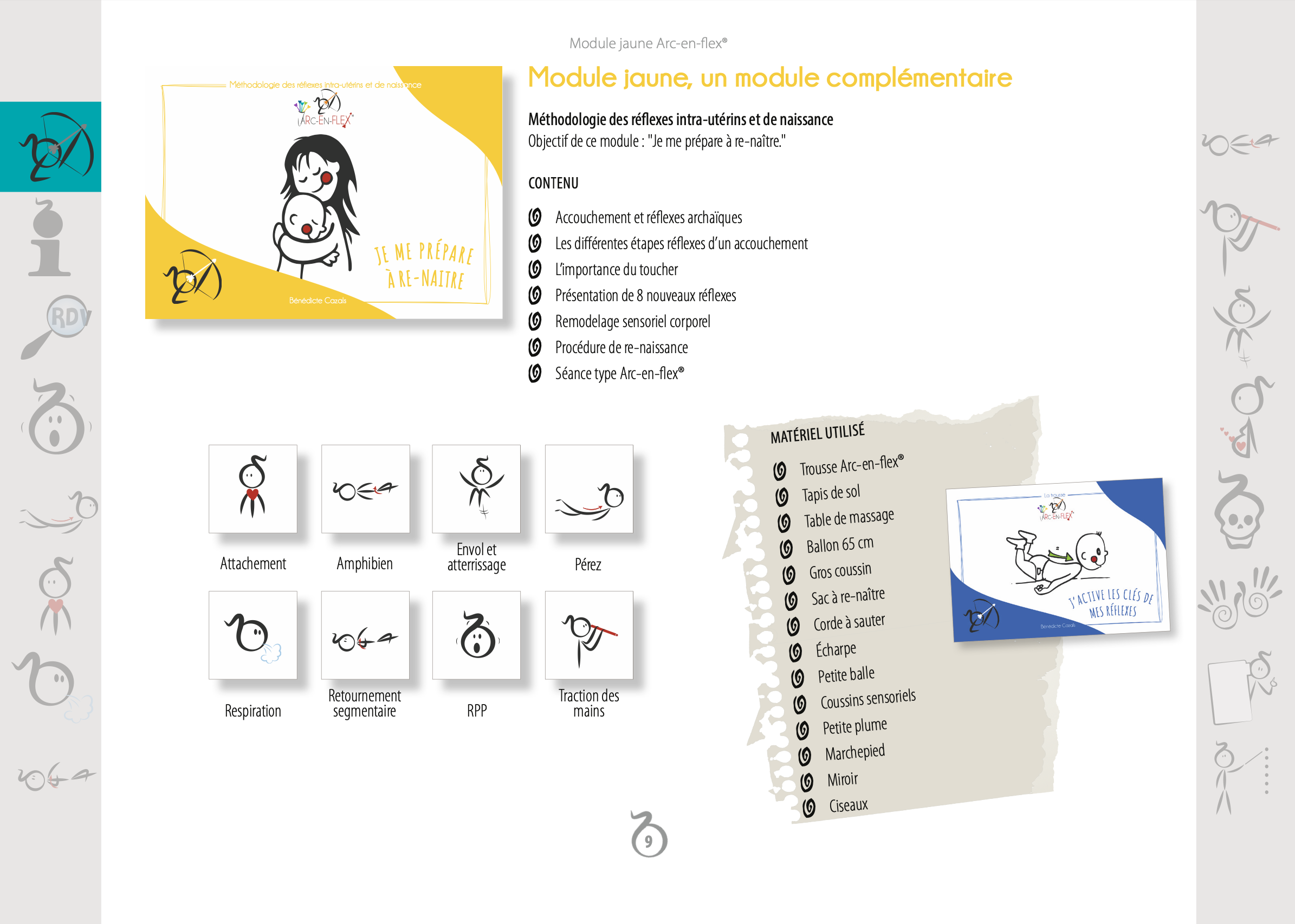 Arc-en-flex nous plonge directement au coeur de la matrice utérine afin d’y explorer l’embryologie et les 5 étapes essentielles de la naissance au travers du monde des réflexes.Ce voyage intra-utérin nous fait découvrir les premières rythmes et le 1er réflexe de défense à se manifester : le réflexe de paralysie par la peur, nommé également réflexe de retrait. La bonne maturation de ce réflexe est essentielle au bon développement de tous les autres réflexes. Vous palperez aussi de nombreux outils pour apprivoiser votre réflexe d’attachement pour faciliter votre vie de relations et vous couper plus facilement des relations toxiques. Une belle occasion de revisiter sa propre arrivée sur terre, sa propre naissance et faire évoluer nos premières empreintes grâce à différents protocoles.